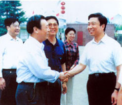 中央政治局委员、中央组织部长李源潮来公司视察工作与张国林董事长亲切握手