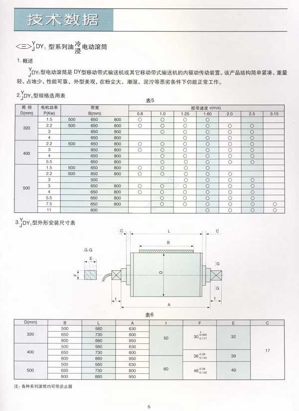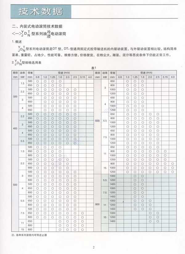 产品介绍 ø200~ø800TDY75油冷式、油浸式外装式电动滚筒、DYI移动油冷式电动滚筒以及带逆止功能、包胶滚筒。广泛适用于矿山、轻工、食品输送、化工、机械流水线、电力自动扶梯等各行业及部门,适用于粉尘大、潮湿、泥泞、露天等各种工作。